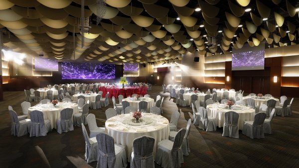 The pillar-free Gordon Wu Hall is 1,060 sq.m. with ceiling height of 6m that can accommodate up to 720 guests. A large LED wall and an elegant marble staircase leading to the Gordon Wu Hall from the lobby will further complement your wedding with the extraordinary style.