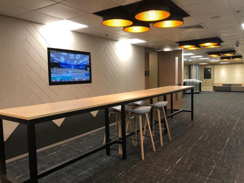 A modern, playful, yet sophisticated environment with a capacity of up to 120 seats and is equipped with a 4.8m wide TV wall, the latest AV and lighting technology training, etc.