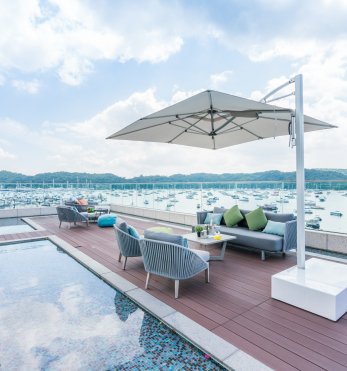 he outdoor rooftop garden provides a 270-degree yacht panorama, complete with a stunning swimming pool and comfortable lounge area, offers a versatile outdoor space perfect for every occasion
